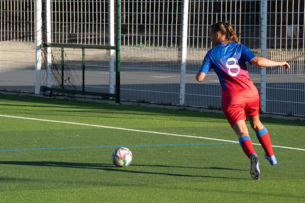 – Une tentative de Margarida qui frôle la lucarne.
